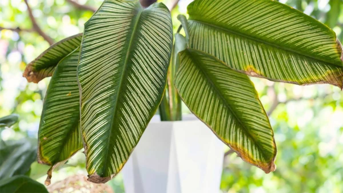 با قیچی تمیز یا هرس کن، برگ هایی را که به شدت زرد، قهوه ای، بدشکل یا پژمرده هستند حذف کنید.